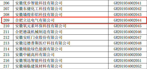 喜訊!熱烈祝賀我公司榮獲“國家高新技術(shù)企業(yè)”稱號 2020年1月7日,國家科學技術(shù)部火炬高技術(shù)產(chǎn)業(yè)開發(fā)中心文件(國科火字[2020]6號)公布通過備案的企業(yè),合肥立達電氣有限公司被認定為國家高新技術(shù)企業(yè),并于近日頒發(fā)了“高新技術(shù)企業(yè)證書”,由此我公司正式邁入國家高新技術(shù)企業(yè)行列。